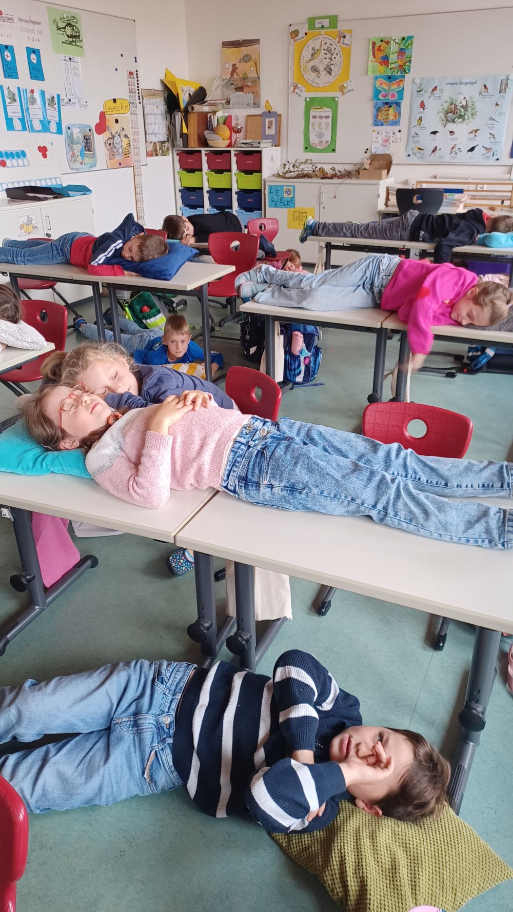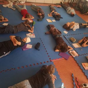 Gerade für unsere Grundschüler, die einen großen Bewegungsdrang haben, ist es wichtig, dass im Unterricht neben den regulären Sportstunden immer wieder Bewegungspausen geschaffen werden. Die Klasse 1a probierte in der Woche der Gesundheit und Nachhaltigkeit vermehrt verschiedene Bewegungsübungen aus dem Programm „Klasse 2000“ zur Musik im Klassenzimmer aus, was den Kindern sichtlich großen Spaß bereitete. Dabei kam aber neben dem „Auspowern“ die Entspannung in Form von einfachen Yogaübungen und verschiedenen Ruheübungen nicht zu kurz. In der Reflexionsphase bekundeten viele Schülerinnen und Schüler, dass sie alle Übungen „toll fanden“ und dass es ihnen danach leichter fiel, sich wieder auf das Lernen zu konzentrieren. (ha)