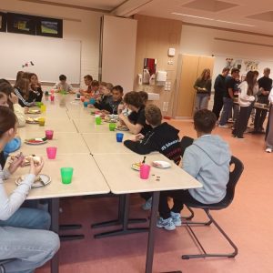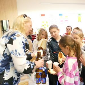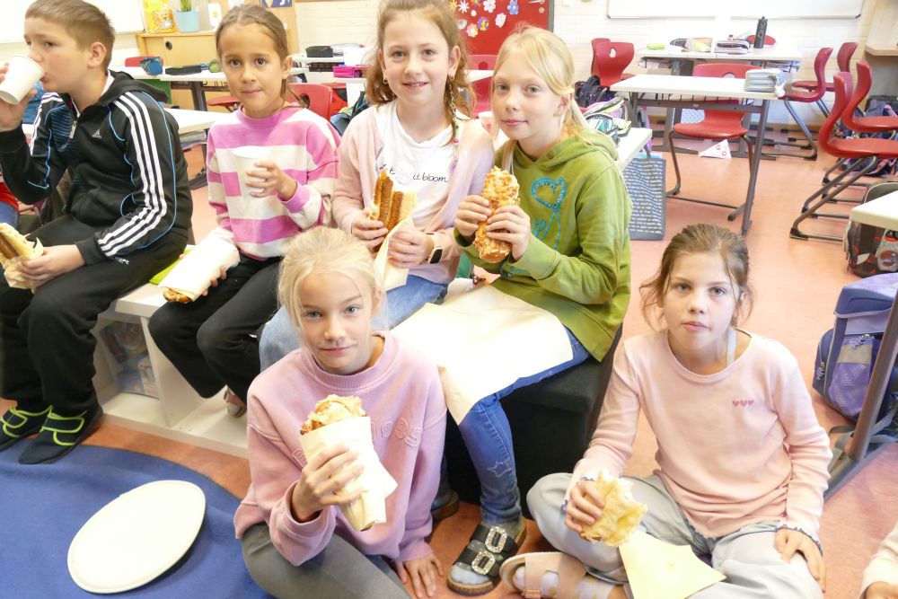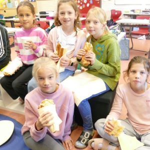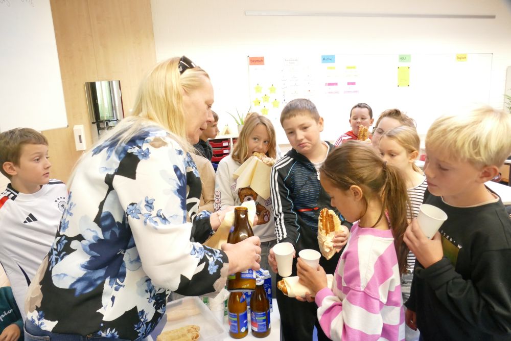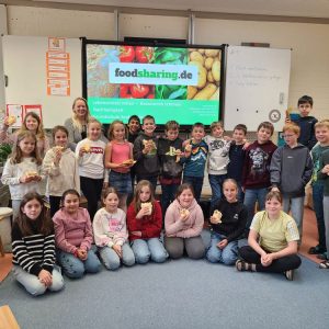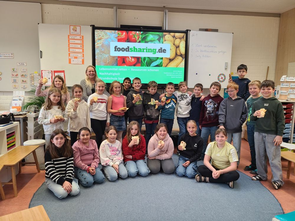 In unserer Woche der Nachhaltigkeit brachte Frau Mersch ein wichtiges Thema mit in den Unterricht der Klassen 4a und 4b: foodsharing, Nachhaltigkeit und der bewusste Umgang mit Lebensmitteln. Mit einer anschaulichen PowerPoint-Präsentation erklärte sie den Kindern, wie viele Lebensmittel in Deutschland täglich im Müll landen, obwohl sie noch völlig genießbar wären. Außerdem machte sie darauf aufmerksam, wie wichtig ein achtsamer Umgang mit den Ressourcen unserer Erde ist. Schließlich durften die Kinder gerettete Backwaren und Milchprodukte probieren und waren überrascht, wie gut die Lebensmittel auch am Tag des Verfallsdatums noch schmeckten. Das Probieren war nicht nur lecker, sondern öffnete auch vielen Kindern die Augen: ein abgelaufenes Mindesthaltbarkeitsdatum heißt nicht gleich, dass alles in den Müll gehört! Ein herzliches Dankeschön an Frau Mersch für den informativen und nachhaltigen Besuch, der sicher in Erinnerung bleiben wird! (bl/aj)