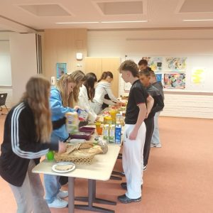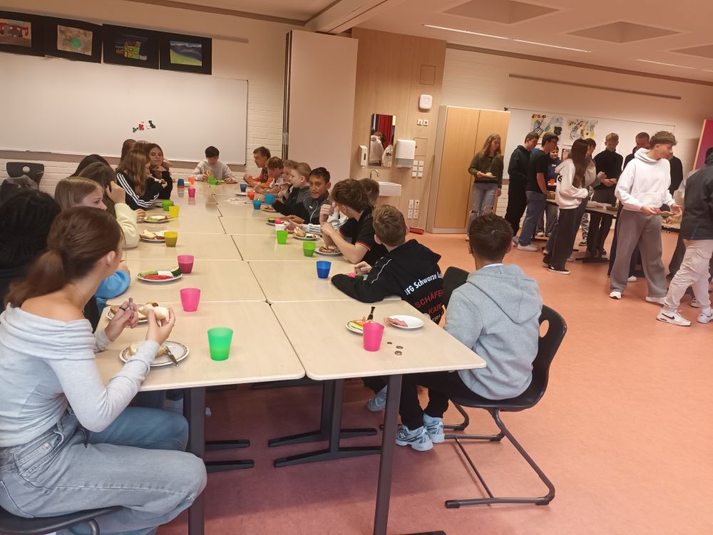 In der Woche der Gesundheit und Nachhaltigkeit haben die Klassen M9a und M9b gemeinsam wertvolle Erfahrungen gesammelt. Die Woche begann mit einem gesunden Frühstück, das reich an frischem Obst und Gemüse war. Dies förderte nicht nur die Gesundheit der Schüler, sondern auch das Bewusstsein für eine ausgewogene Ernährung. Ein weiterer Schwerpunkt lag auf der Auseinandersetzung mit regionalen Selbstvermarktern sowie Bio- und Dorfläden. In Zweierteams recherchierten die Schüler verschiedene Betriebe und erstellten informative Steckbriefe. Diese enthielten wichtige Informationen wie den Standort, die angebotenen Produkte und besondere Merkmale der Betriebe.Durch diese Aktivitäten konnten die Schüler nicht nur ihr Wissen über gesunde Ernährung erweitern, sondern auch ein Gefühl für die Bedeutung von Nachhaltigkeit und regionalen Wirtschaftskreisläufen entwickeln. Die Woche war ein voller Erfolg und hat das Bewusstsein der Schüler für Gesundheit und Umwelt gestärkt. (KSch)