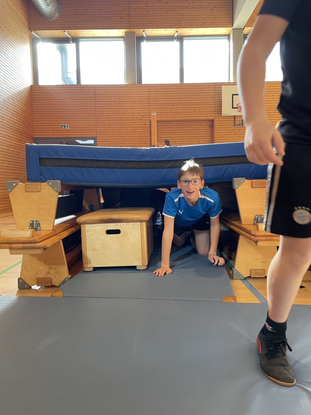 Im zweiten Teil des Sporttags standen spannende Staffelspiele auf dem Programm. Hierbei wurden sowohl Balancieraufgaben als auch Übungen aus dem Bereich Calisthenics und Animal Moves, wie zum Beispiel der Spinnengang, durchgeführt. Diese abwechslungsreichen Herausforderungen forderten die Schülerinnen und Schüler nicht nur körperlich, sondern auch im Teamgeist. Zusätzlich hatten die Kinder die Möglichkeit, ihre Kraft in Wettkämpfen gegen die Studierenden unter Beweis zu stellen. Übungen wie der „Sitz an der Wand“ und der „Plank an der Wand“ sorgten für viel Spaß und eine gesunde Portion Wettkampfgeist. Auch weniger bekannte Sportarten kamen nicht zu kurz. Die Schülerinnen und Schüler probierten Cross-Boccia und Spikeball aus, was für viele eine neue und spannende Erfahrung war.
