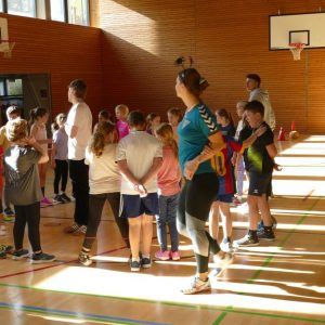 Am letzten Ferientag vor den Herbstferien erlebten die Schülerinnen und Schüler der 3. bis 6. Klassen einen spannenden Sporttag, der in Zusammenarbeit mit Studierenden der Universität Regensburg organisiert wurde. Insgesamt 17 angehende Lehrkräfte mit dem Hauptfach Sport hatten im Rahmen ihres Seminars für Bewegungstherapie ein abwechslungsreiches Programm vorbereitet.