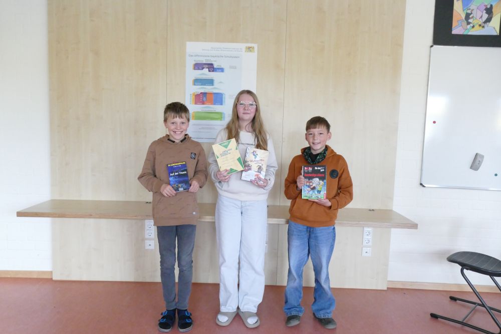 Den bundesweiten Vorlesetag nahm sich die 6. Klasse zum Anlass, sich am Vorlesewettbewerb des Deutschen Buchhandels zu beteiligen. Dieser steht unter der Schirmherrschaft des Bundespräsidenten und zählt zu den größten bundesweiten Schülerwettbewerben. Rund 600.000 Schülerinnen und Schüler beteiligen sich jedes Jahr. Wer gerne liest und Spaß an Büchern hat, war eingeladen, sein Lieblingsbuch vorzustellen und eine kurze Passage daraus vorzulesen. Nach einer Vorentscheidung im Unterricht, waren 8 Kinder zum Schulentscheid angetreten. Unter dem Auge der Jury, die aus der Klassenlehrerin Laura Beer, der Schülersprecherin Greta Almas und Schulleiter Markus Eigenstetter bestand, wurden Passagen aus den unterschiedlichsten Jugendbüchern vorgelesen. Bewertet wurden die Lesefertigkeit, die Interpretation des Textes und die Präsentation des Buches. Die Jury hatte es nicht leicht, da alle Kinder ein gute Leistung zeigten. Am Ende kristallisierte sich aber doch eine Siegerin heraus: Die beste Leserin war Sonja Götz, die sich knapp vor Simon Stiegler und Noah Oettl qualifizierte. Sie erhielt eine Urkunde und bekommt einen Buchpreis. Sonja hat auch die Gelegenheit, als Schulsiegerin am Regionalentscheid im Landkreis teilzunehmen. (me)