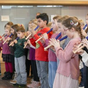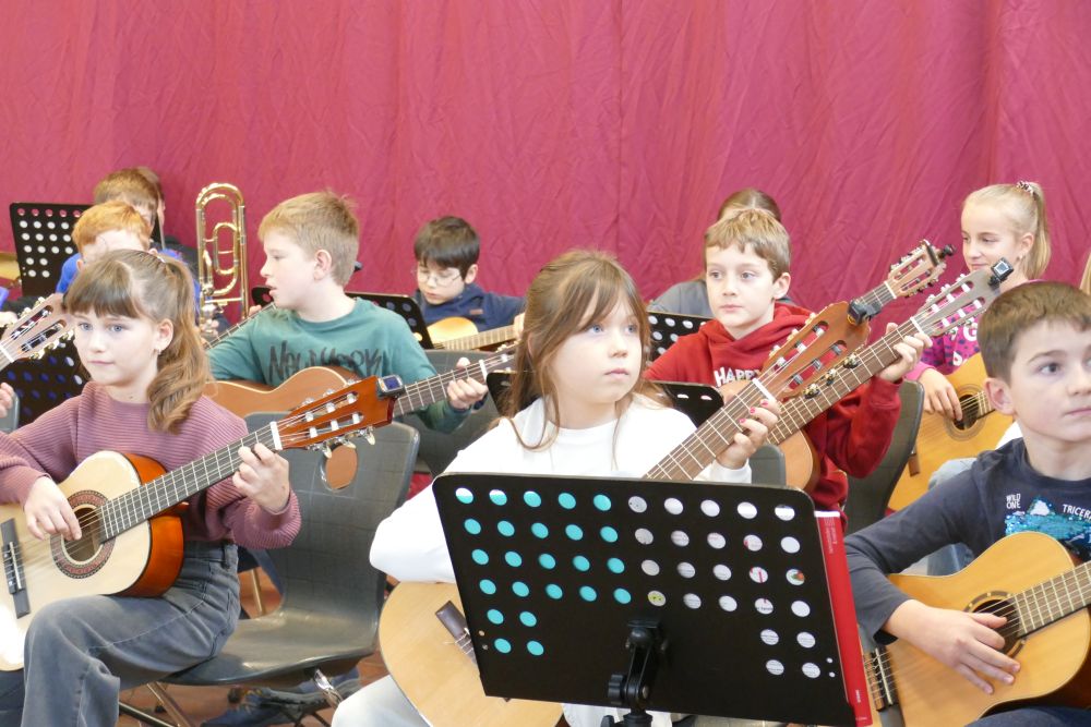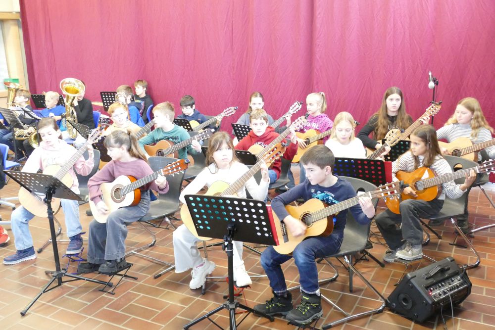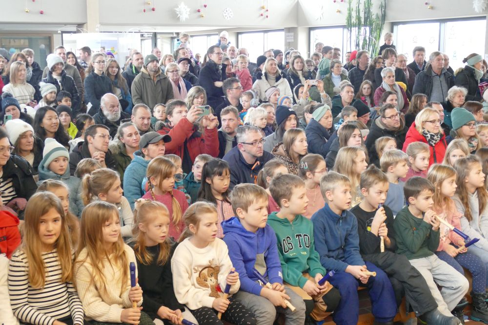 Am ersten Adventssonntag fand im Rahmen des Adventsmarktes der Gemeinde Seubersdorf ein mittlerweile schon traditionelles musikalisches Ereignis statt. Die Musikgruppen der Grundschule traten vor einem großen Publikum in der Aula auf und sorgten für eine wunderschöne, vorweihnachtliche Stimmung. Die Veranstaltung begann mit der Bläserklasse 4, geleitet von Willibald Höfele. Sie präsentierte beeindruckende Stücke wie die Christmas Fanfare, die mit festlichem Glanz begeisterte, sowie die berühmte Ode an die Freude. Ein weiterer Höhepunkt war der Klassiker Jingle Bells, der das Publikum zum Mitsingen animierte. Anschließend folgte die Flötengruppe der 2. Klassen unter der Leitung von Katharina Schneider. Diese erzählte eine zauberhafte Nikolausgeschichte, die musikalisch von den Flötenkindern untermalt wurde und die Zuhörer in die festliche Stimmung eintauchen ließ. Die Gitarrengruppe, bestehend aus Schülerinnen und Schülern verschiedener Klassen, rundete das Programm mit mehreren weihnachtlichen Songs ab. Ihre Darbietungen trugen zur festlichen Atmosphäre bei und begeisterten das Publikum. Nach dem Konzert hatten die Besucher die Möglichkeit, über den Adventsmarkt zu schlendern. Der Elternbeirat bot im Bürgersaal Kaffee und köstlichen Kuchen an, was den Konzertnachmittag perfekt abrundete. Wir bedanken uns bei allen Beteiligten für die schöne Veranstaltung und freuen uns auf eine besinnliche Vorweihnachtszeit. (me)