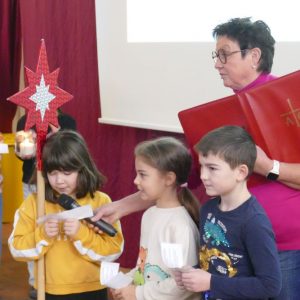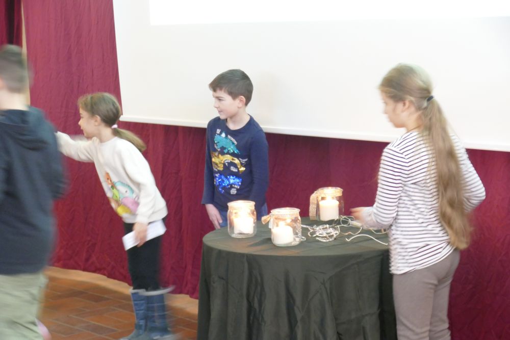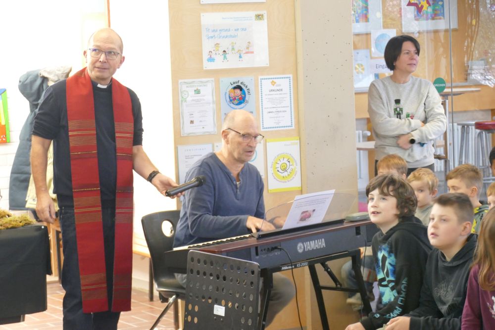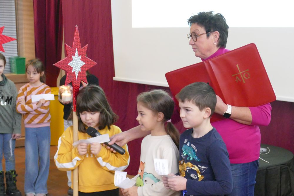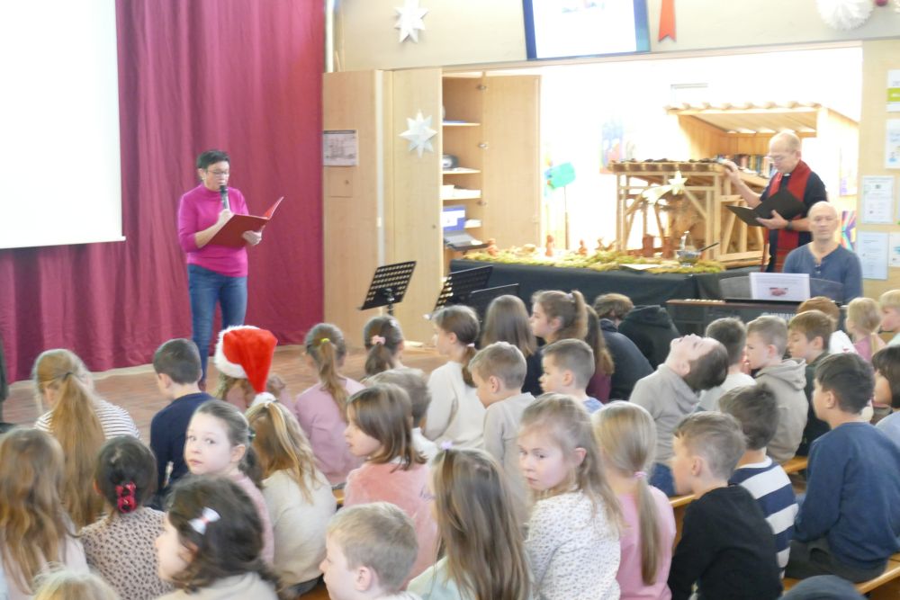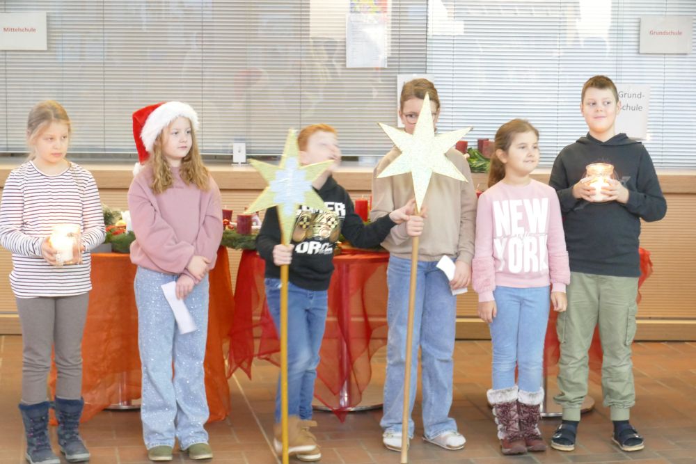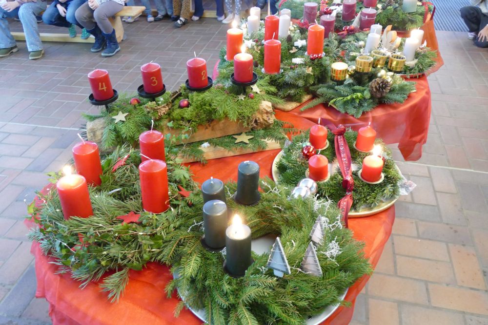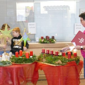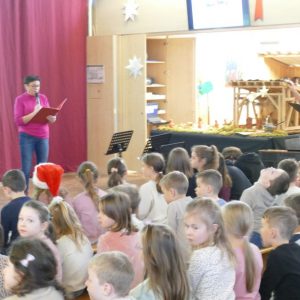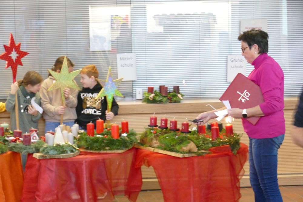 Es ist eine schöne Tradition an unserer Schule, dass zum ersten Advent die Adventskränze der Klassenzimmer in einer kleinen Feierstunde gesegnet werden. Religionslehrerin Karolina Schmid und Pfarrer Gräff hatten die Andacht mit besinnlichen Texten und Liedern vorbereitet. Die Grundschulkinder genossen die besinnliche Stimmung. Frau Schmid vermittelte den Schülerinnen und Schülern die Bedeutung der Adventszeit: