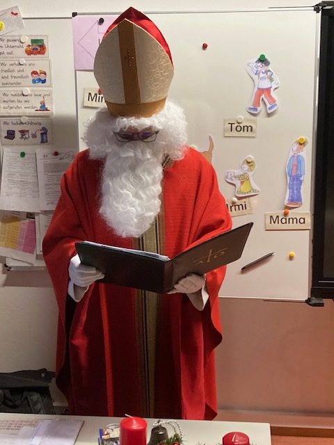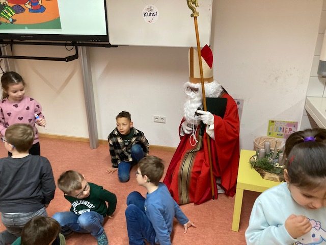 Am vergangenen Montag klopfte es überraschend an der Klassenzimmertür: Der Nikolaus besuchte die Schülerinnen und Schüler der 1. und 2. Klasse unserer Grundschule. Die Aufregung war groß, als der Nikolaus mit seinem weißen Bart und dem roten Mantel in die Klassenräume trat. Der Nikolaus brachte nicht nur Geschenke, sondern auch viele lobende Worte für die Kinder mit. Er sprach über die tollen Fortschritte, die die Schülerinnen und Schüler in diesem Jahr gemacht haben, und lobte ihr Engagement beim Lernen und in der Gemeinschaft. Doch der Nikolaus hatte auch einige Ermahnungen parat. Er erinnerte die Kinder daran, freundlich zueinander zu sein, respektvoll miteinander umzugehen und auch in der Adventszeit an das Teilen und Helfen zu denken. Die Kinder freuten sich sehr, als der Nikolaus Mandarinen und Lebkuchen verteilte. Diese süßen Geschenke sind ein schöner Brauch, der an die Geschichte des Heiligen Nikolaus von Myra erinnert, der für seine Großzügigkeit und Hilfsbereitschaft bekannt war. Der Nikolausbesuch war nicht nur eine Abwechslung im Schulalltag, sondern auch eine wertvolle Gelegenheit für die Kinder, die Traditionen rund um den Nikolaus kennen zu lernen und zu schätzen. (me)