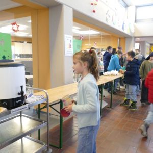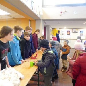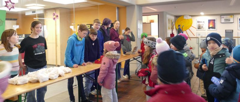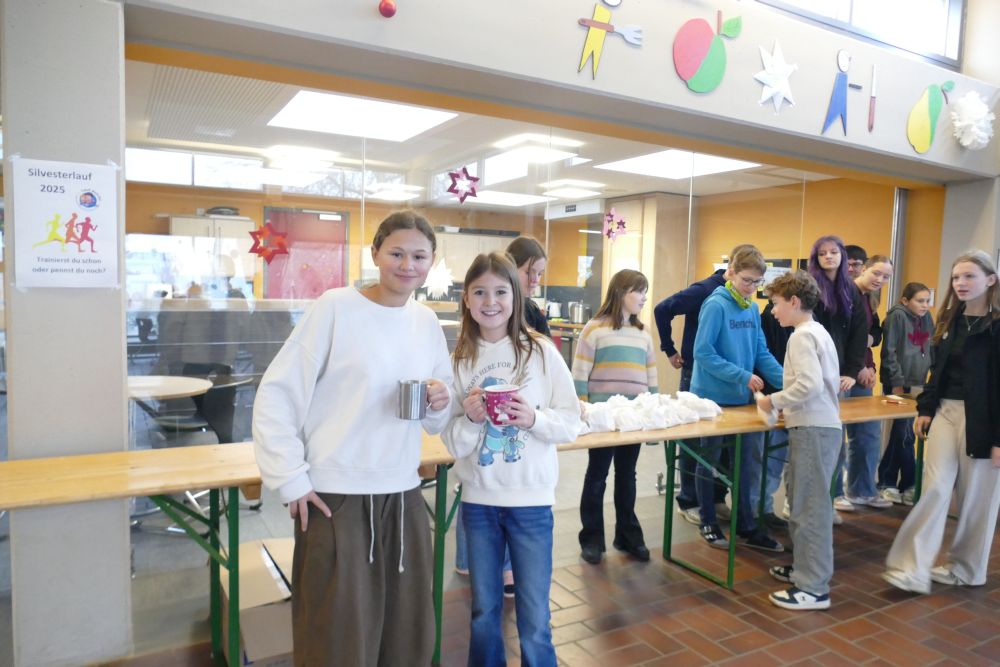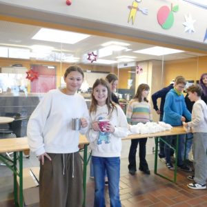 Am 17.12. veranstaltete die SMV in der großen Pause einen stimmungsvollen Kinderpunsch- und Lebkuchenverkauf für die gesamte Schulgemeinschaft. Passend zur Vorweihnachtszeit wurde der Verkauf von weihnachtlicher Musik begleitet, die für eine gemütliche und fröhliche Atmosphäre in der Aula sorgte und viele Schülerinnen und Schüler sowie Lehrkräfte anlockte. Ein besonderer Dank gilt der 6. Klasse, die mit viel Engagement die Lebkuchentüten liebevoll gepackt hat. Außerdem unterstützten die Schülerinnen und Schüler die SMV tatkräftig beim Auf- und Abbau des Verkaufsstandes und trugen so maßgeblich zum reibungslosen Ablauf der Aktion bei. Insgesamt konnten 80 Lebkuchentüten verkauft werden, was den großen Erfolg der Aktion unterstreicht. Der erzielte Gewinn fließt in die SMV-Kasse und steht somit für zukünftige Anschaffungen und Aktionen zur Verfügung, die der gesamten Schulgemeinschaft zugutekommen werden. Die gelungene Aktion zeigte einmal mehr, wie durch gemeinsames Engagement und Teamarbeit eine schöne vorweihnachtliche Veranstaltung auf die Beine gestellt werden kann. (lb)