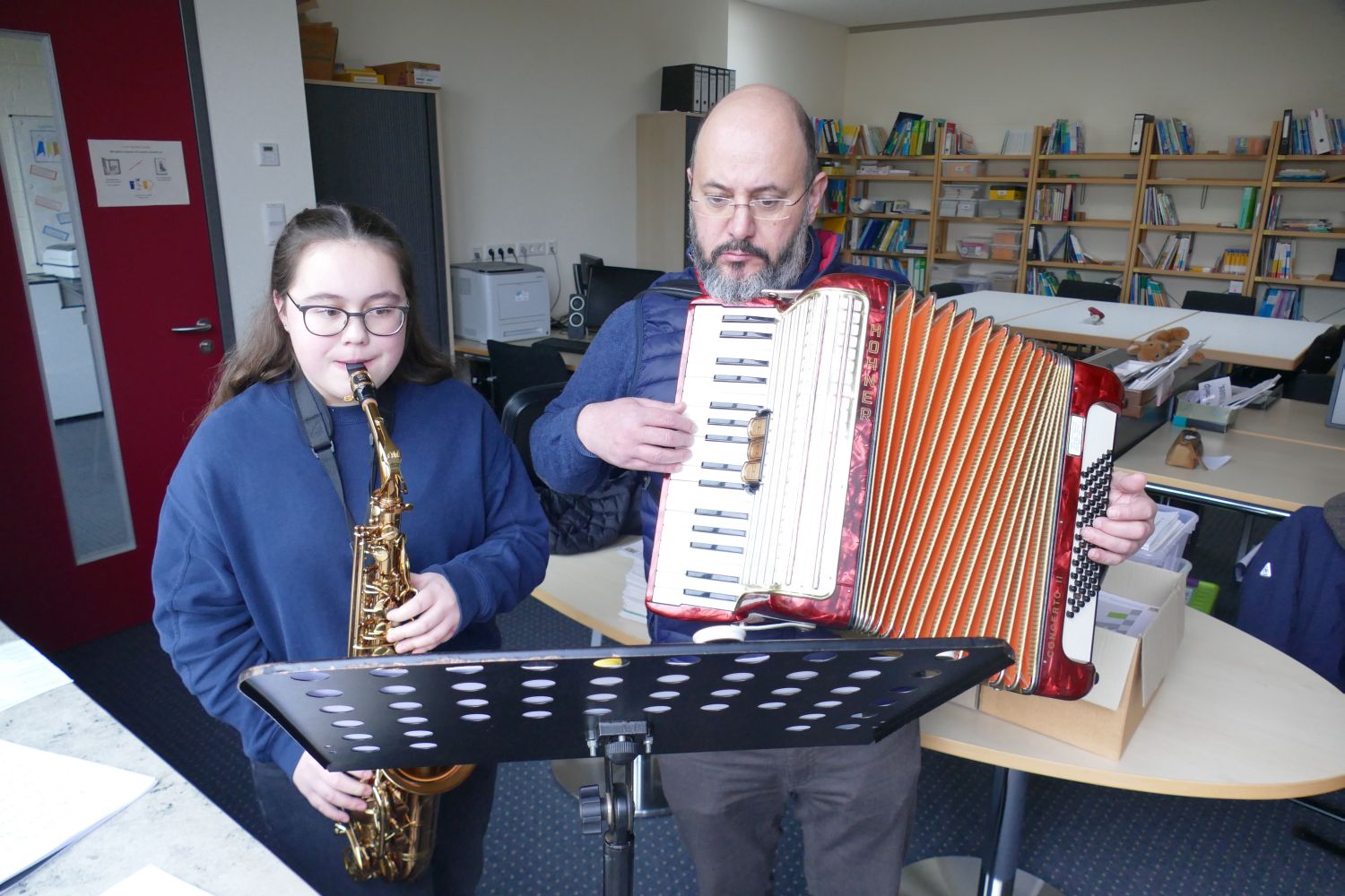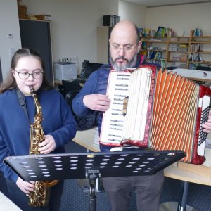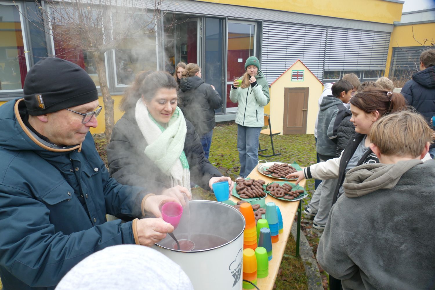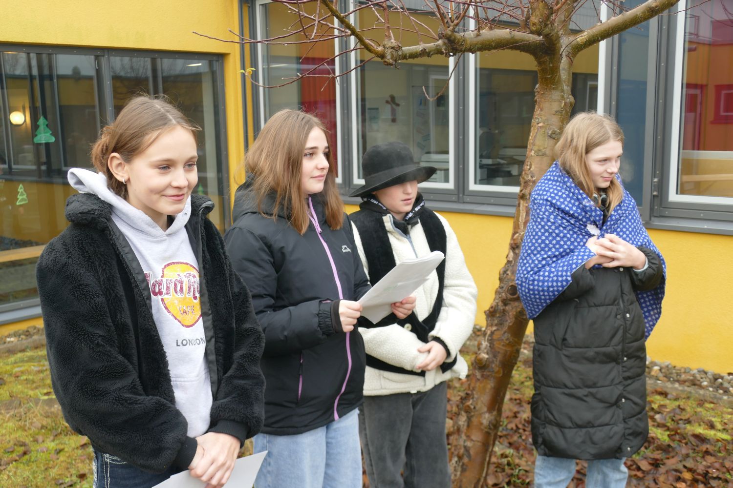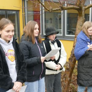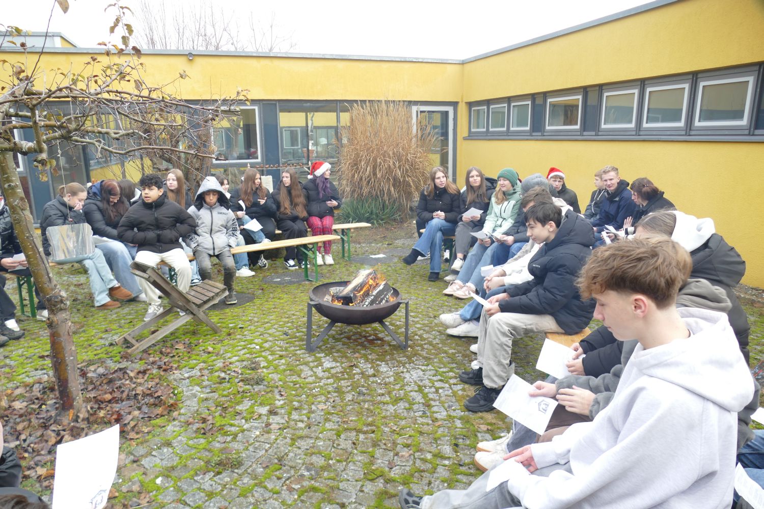 Für die Schülerinnen und Schüler der 7. und 9. Klassen fand im Innenhof der Schule eine stimmungsvolle Hirtenfeier statt. Umgeben von der warmen Atmosphäre eines Lagerfeuers versammelten sich die Jugendlichen und genossen die schöne Stimmung. Milena Eichenseer hatte mit der 7. Klasse ein ganz besonderes Krippenspiel vorbereitet, das mit einem unerwarteten Schluss überraschte. In einer herzlichen Wendung öffnete der Wirt während der Herbergssuche sein Haus und ließ Maria und Josef ein. Dieses Motto – „Öffnet die Türen, öffnet euer Herz!“ – vermittelte eine wichtige Botschaft über Gastfreundschaft und Nächstenliebe. Der Schulvormittag klang gemütlich aus, als die Schülerinnen und Schüler bei Kinderpunsch und Lebkuchen zusammenkamen. Klaus Schmidmeister am Akkordeon und Sophia Kral mit dem Saxofon sorgten für die musikalische Umrahmung. Diese besonderen Momente förderten nicht nur den Gemeinschaftssinn, sondern luden auch dazu ein, über die Werte der Weihnachtszeit nachzudenken. (me)