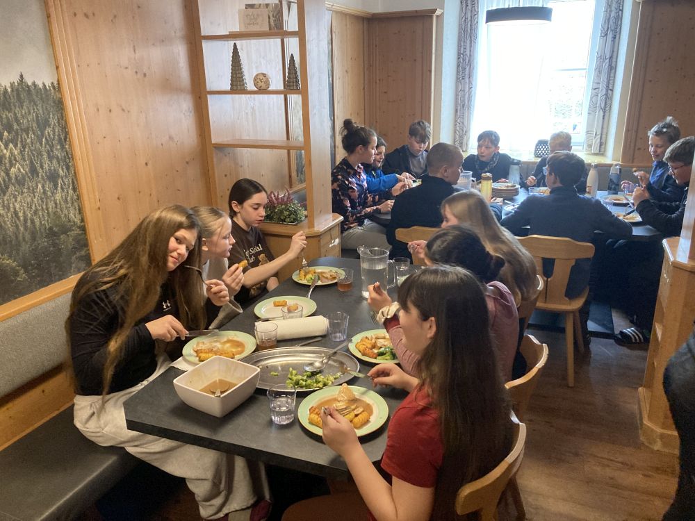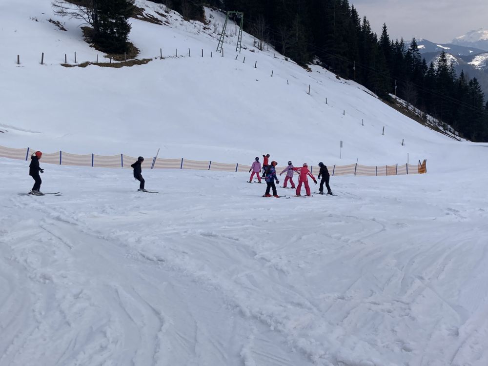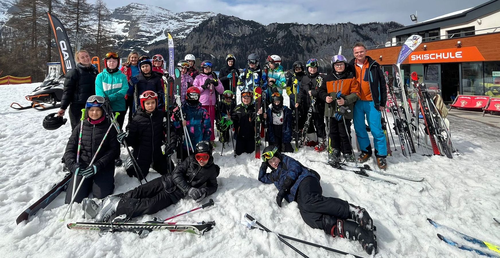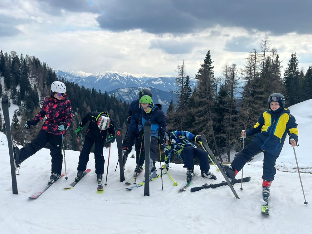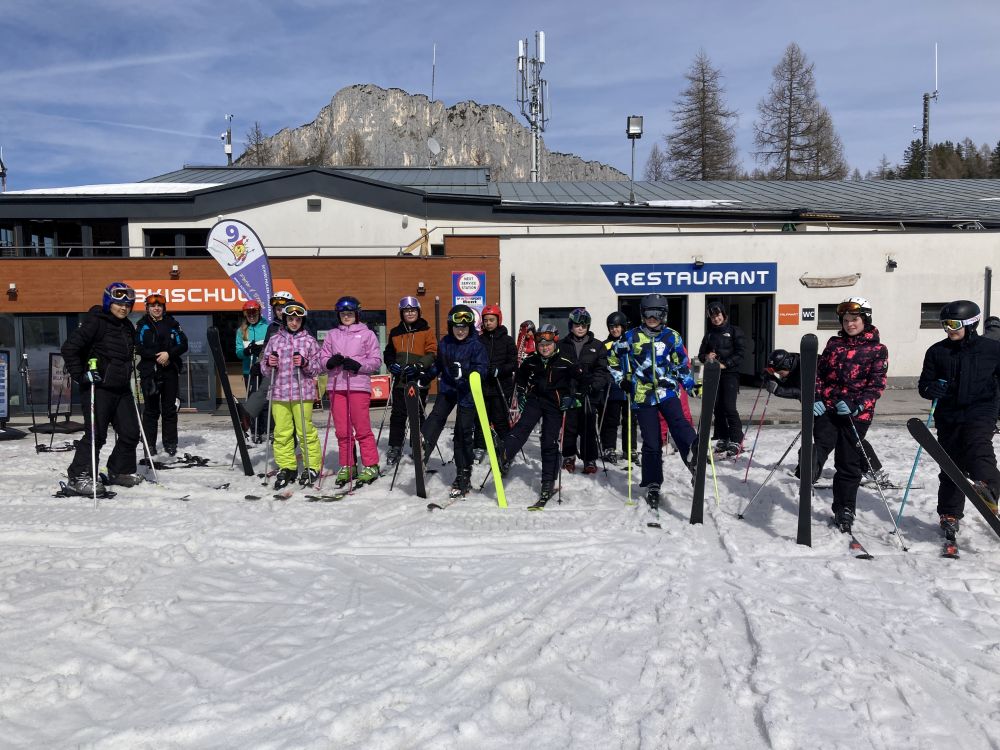 Schon seit vielen Jahren sind Seubersdorfer Schülerinnen und Schüler zu Gast in Spital am Pyhrn in Oberösterreich. Auch in diesem Schuljahr verbrachten 20 Kinder der 6. Klasse mit 4 Lehrkräften eine erlebnisreiche Wintersportwoche. Bei herrlichem Sonnenschein und frühlingshaften Temperaturen reisten wir an. Schon am Nachmittag des ersten Tages, nachdem alle beim Skiverleih ausgestattet waren, ging es auf die „Wurzeralm“, das Skigebiet, das wir im Laufe der Woche ausgiebig erkunden durften. Aller Anfang ist schwer: Vertrautmachen mit dem sperrigen Sportgerät, Bewegen in der Ebene, erst Schussfahrten und Bremsen standen auf dem Programm. Es war ein großer Erfolg, dass schon am zweiten Tag fast alle ihre ersten Kurven schafften und den Kid’s Park verlassen konnten, um die ersten richtigen Abfahrten zu meistern. Eine unerwartete Überraschung war, dass am Mittwoch ein heftiger Wintereinbruch kam. 30 cm Neuschnee verzauberte das Skigebiet in ein Winterwonderland, die unpräparierte Tiefschneepiste war aber eine Herausforderung. Alle stellten sich aber den Schwierigen verhältnissen, übten fleißig, sodass wir am Freitag sogar ein Abschlussrennen veranstalten konnten, bei dem alle ihren ersten Slalom bewältigten.