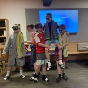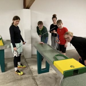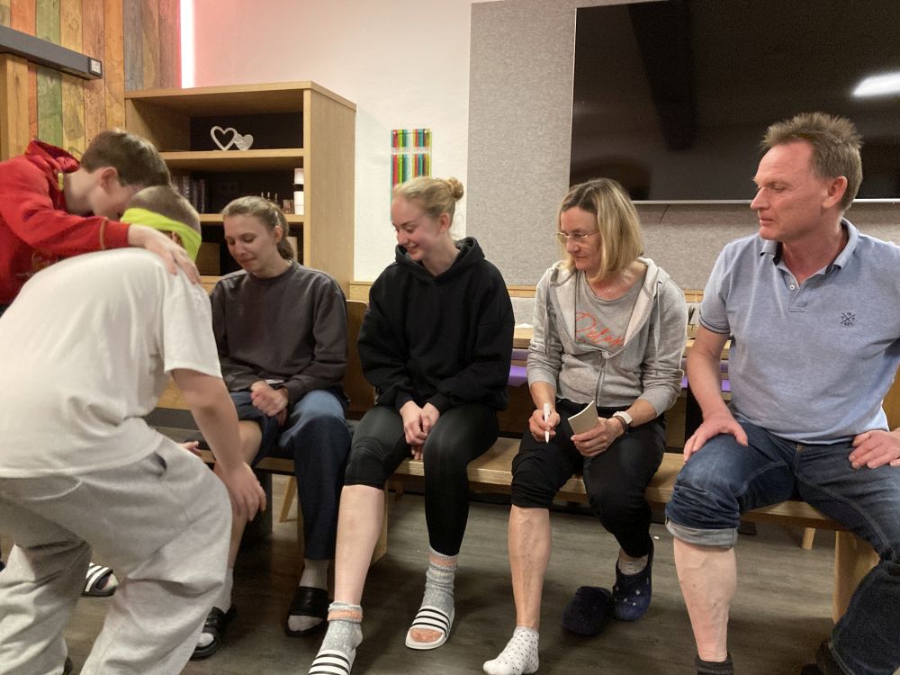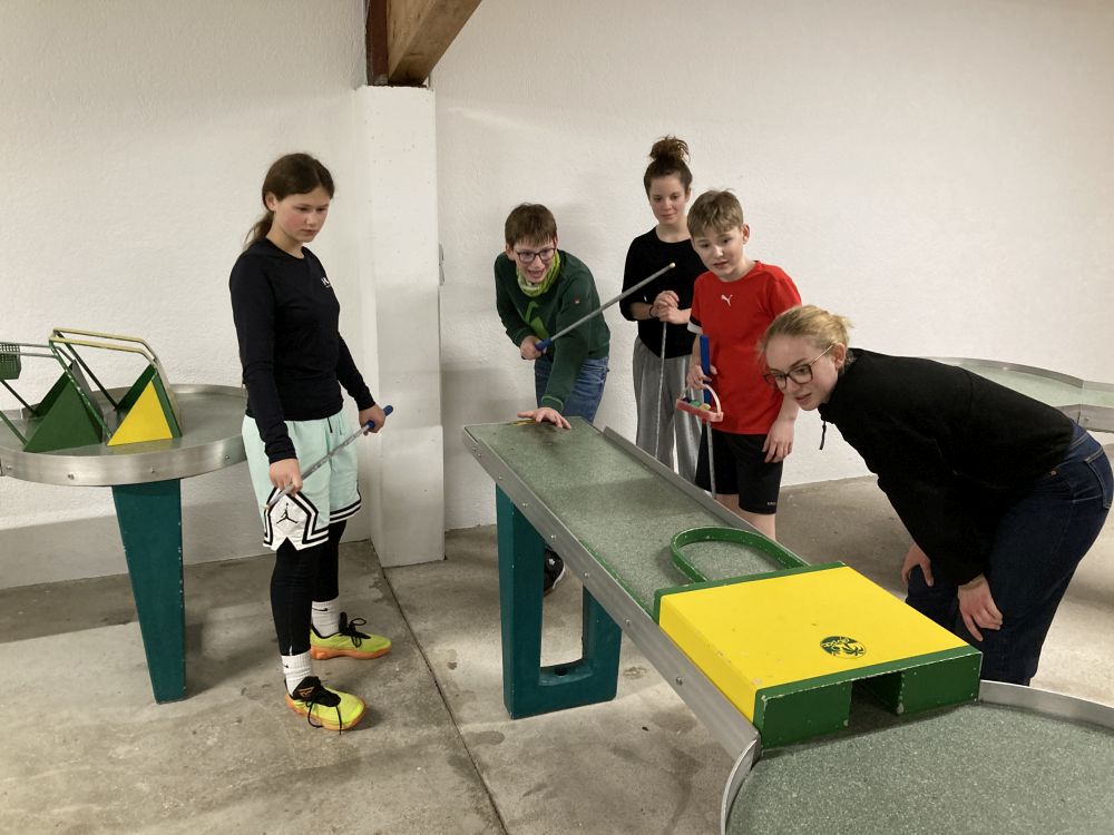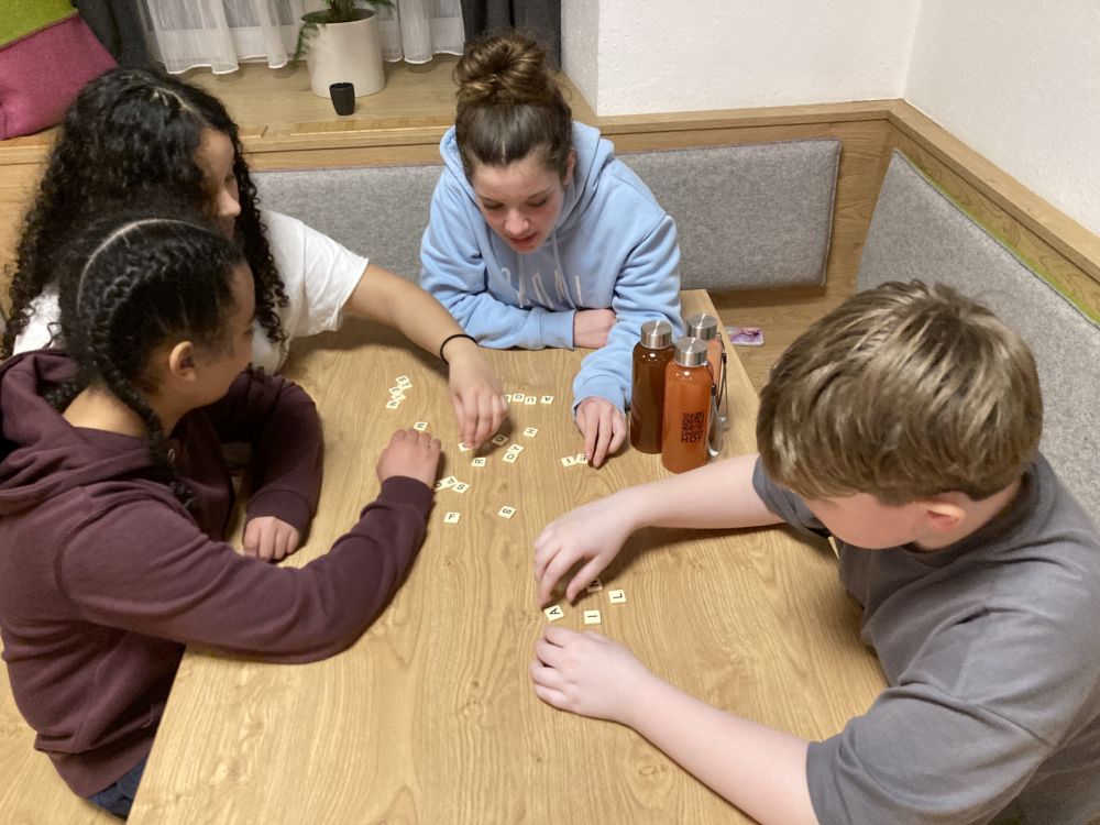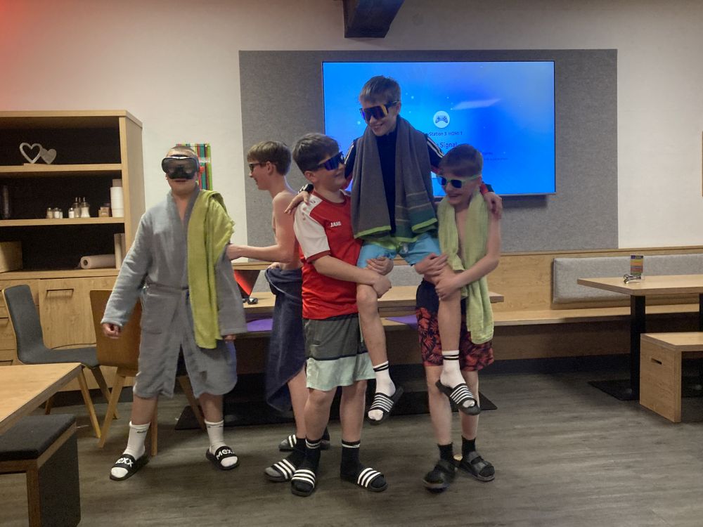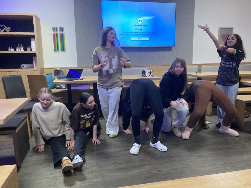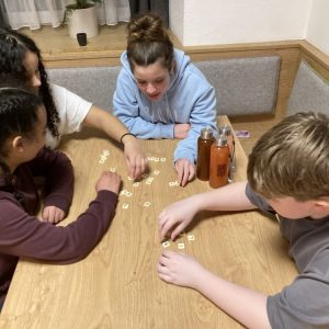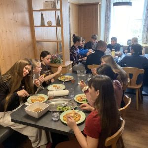 Unser Quartier war –wie schon seit mehr 20 Jahren- das Jugendparadies Lindenhof, wo die Seubersdorfer immer herzlich willkommen sind, wo die Herbergselten Georg und Maria eine wunderbare Wohlfühlatmosphäre vermitteln und ihre Gäste mit einer hervorragenden österreichischen Hausmannskost verwöhnen. Auch für die Abendgestaltung hatten sich die betreuenden Lehrkräfte, Frau Brandl, Frau Namberger, Herr Eigenstetter und die Sportstudentin Caro einiges einfallen lassen. So gab es eine lustigen Spieleolympiade. Wer kann die meisten Kleidungsstücke einer Farbe anziehen? Wer kann mit verbunden Augen die Wadeln der Lehrkräfte erraten oder Begriffe pantomisch darstellen. Alle hatten einen Riesenspaß. Es gab auch tolle Preise zu gewinnen. Hauptpreise waren das Gute-Nacht-Lied der Lehrer oder der heiß begehrte „Kasten Cola“, der sich allerdings als eine Packung Gummibärchen entpuppte. Mit dem Film „Die Pistenrowdies“ lernten die neuen Kinder auch, wie man sich auf der Skipiste zu verhalten hat. Einen Abend verbrachte die Gruppe in der Freizeithalle des Lindenhofs, wo es heiße Duelle im Pit-Pat, Kickern, Tischtennis und Fußball gab. Am letzten Abend, dem „Bunten Abend“, ging es noch einmal hoch her. Die Schülerinnen und Schüler gestalteten den Abend selbst. Sie hatten sich Sketche überlegt, erzählten Witze, stellten Rätsel oder führten eine Tanzeinlage vor.