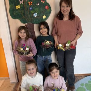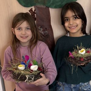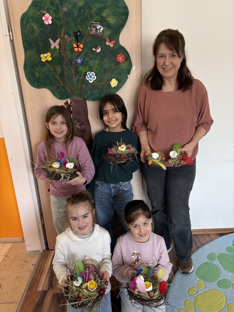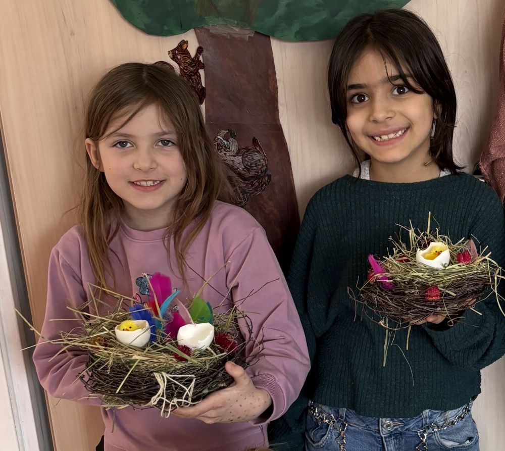 Im offenen Ganztag wurde es in den vergangenen Wochen frühlingshaft und kreativ: Gemeinsam mit den Kindern haben wir uns auf das Osterfest eingestimmt und dabei ganz besondere Osternester gestaltet. Mit viel Freude und Engagement entstanden aus Naturmaterialien kleine Kunstwerke. Aus biegsamen Birkenzweigen formten die Kinder ihre eigenen Nester, die anschließend liebevoll dekoriert wurden. Besonders spannend war dabei die Arbeit mit echten Eierschalen, die vorsichtig vorbereitet und kreativ gestaltet wurden. So konnte jedes Kind sein ganz individuelles Osternest erschaffen. Neben dem Basteln war es uns ein großes Anliegen, den Kindern ein bisschen Hintergrundinfos zum Osterfes näherzubringen. In kindgerechten Gesprächen und kleinen Geschichten haben wir gemeinsam über Traditionen, Bräuche und warum es überhaupt Osternester gibt, gesprochen. Ein besonderes Highlight war natürlich die Osternestsuche. Mit leuchtenden Augen machten sich die Kinder auf die Suche nach ihren selbst gestalteten Nestern, die zuvor im Außenbereich versteckt worden waren. Die Freude beim Finden war riesig und sorgte für viele strahlende Gesichter. (am)
